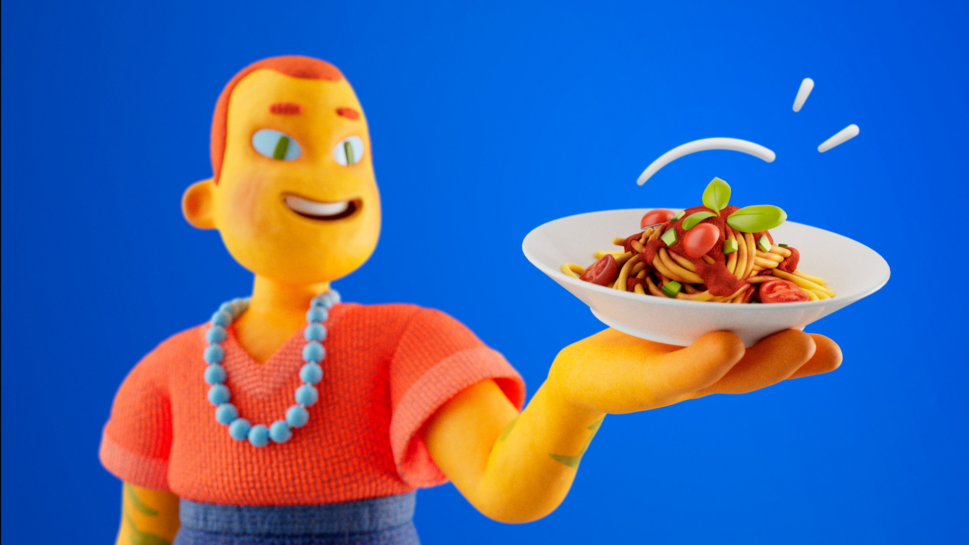 Spagetti simulation > Added food > Final render