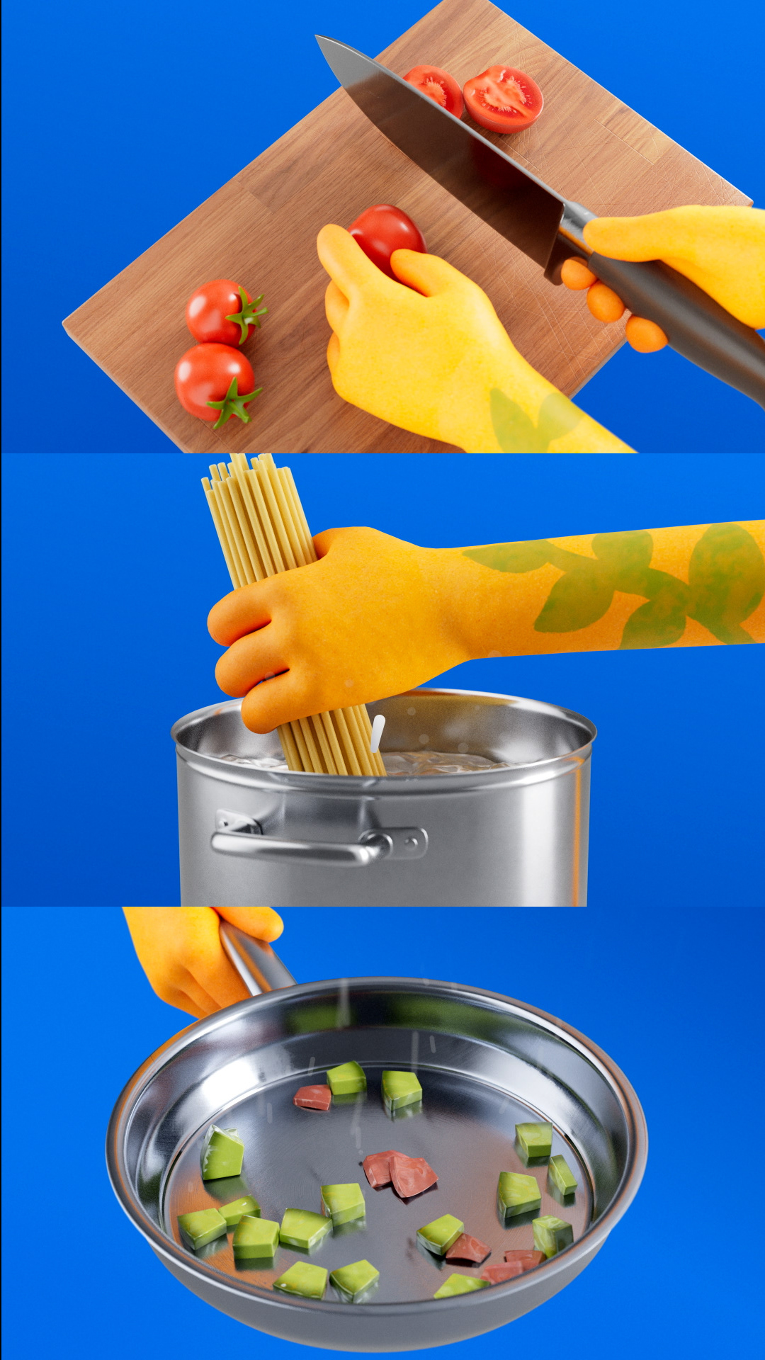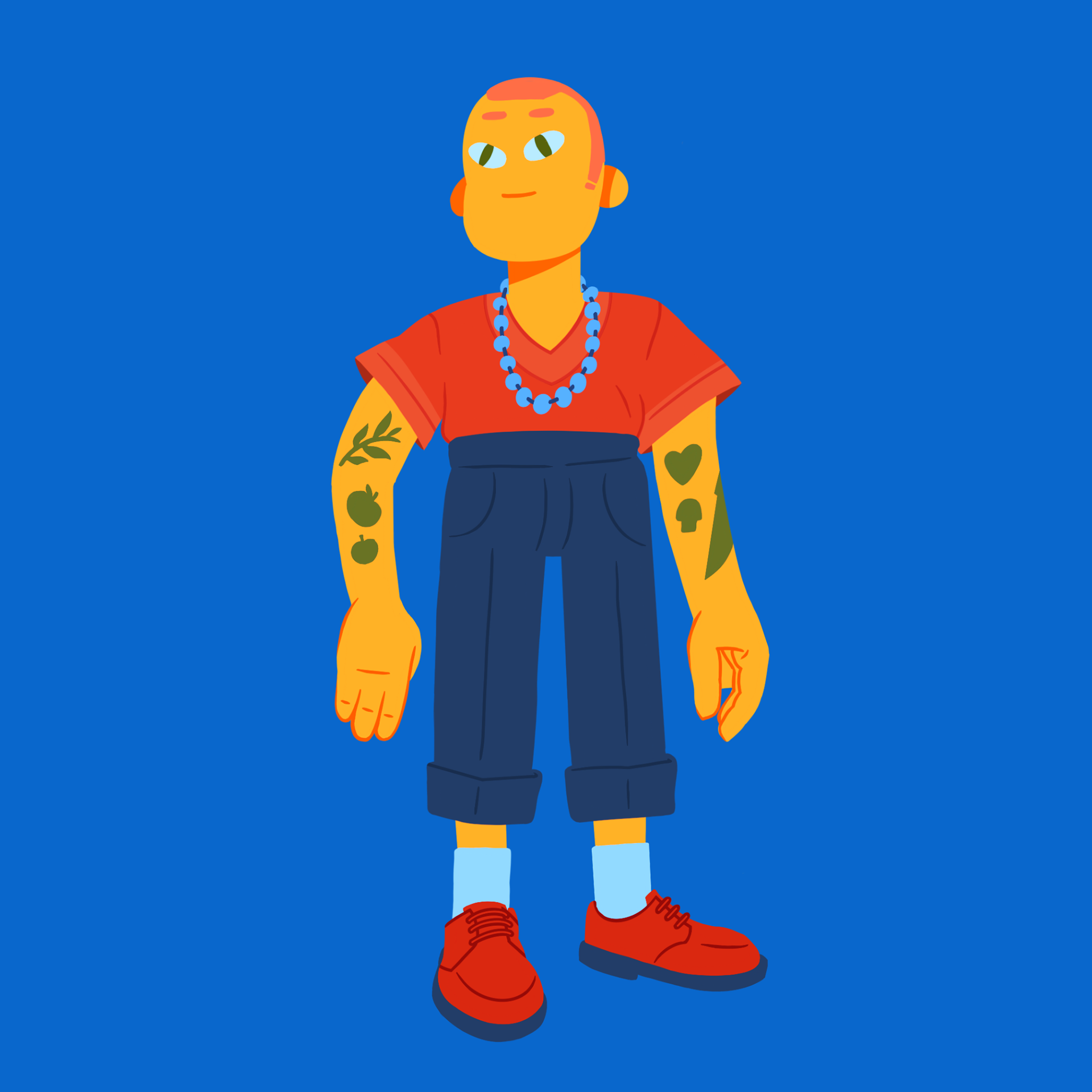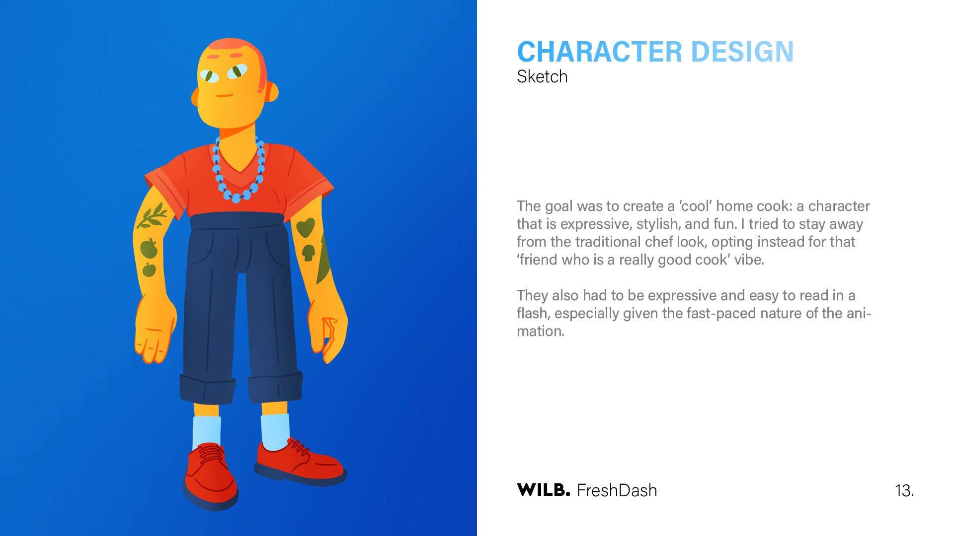 The goal was to create a ‘cool’ home cook: a character that is expressive, stylish, and fun. I tried to stay away from the traditional chef look, opting instead for that ‘friend who is a really good cook’ vibe.