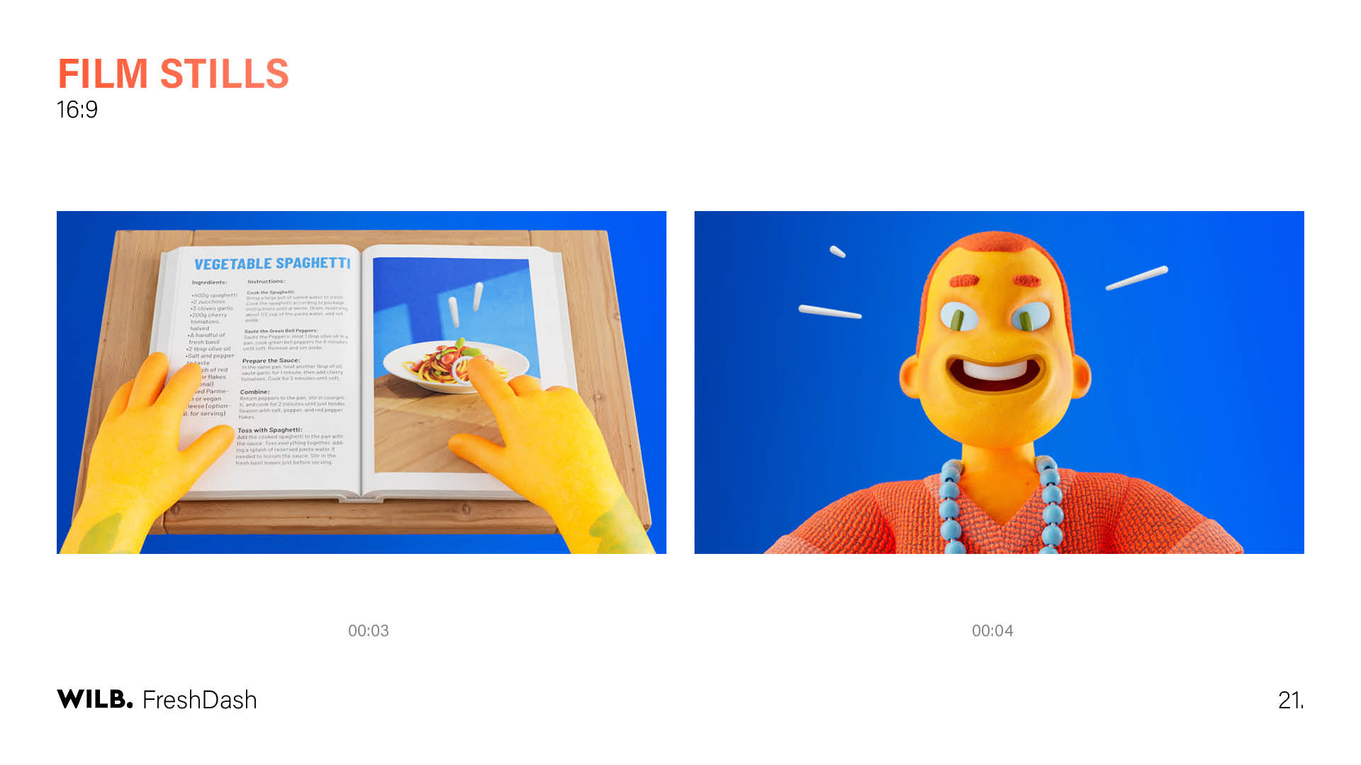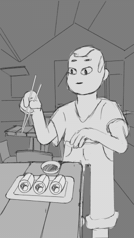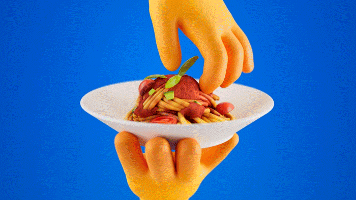Food and animation are a tricky combination, it can start to look unappetizing very quickly if not properly designed. The challenge was that the stylized nature of this project wasn't compatible with realistic food, so I had to find a middle ground. This exploration was a lot of fun, I spent time analyzing examples of animated food and comparing them to photos of real food to determine what would work and what wouldn't.