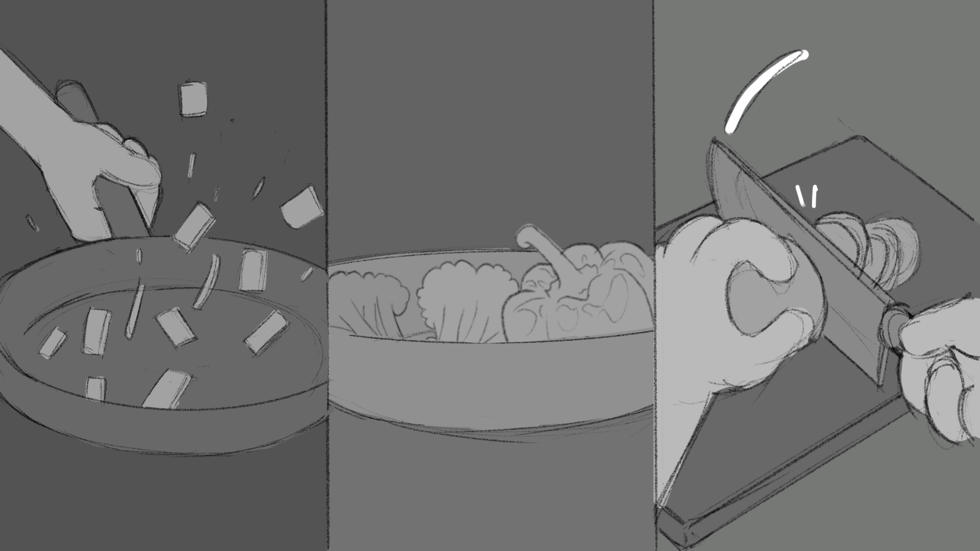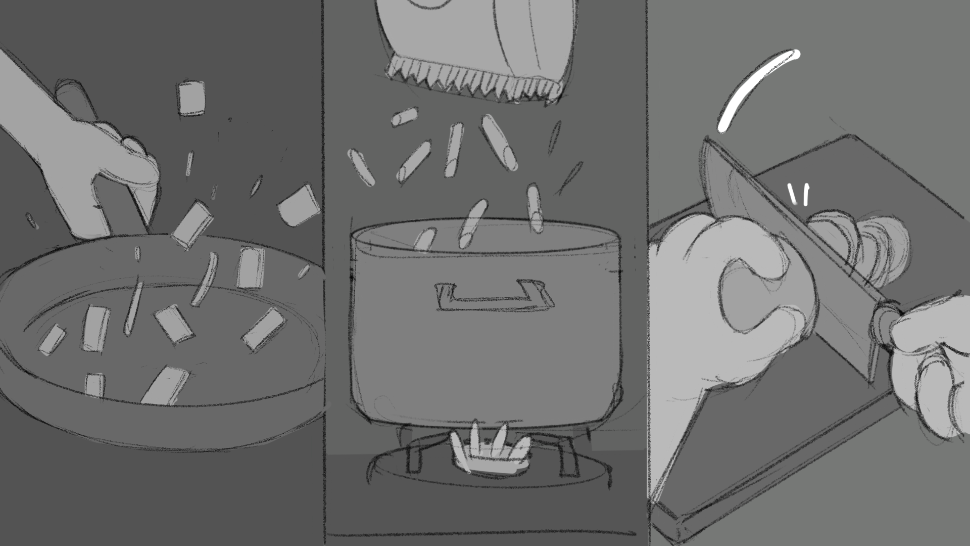 To ensure the story would work, I thumbnailed and then storyboarded the most important story beats, making it clear what the project would look like and how it would play out.